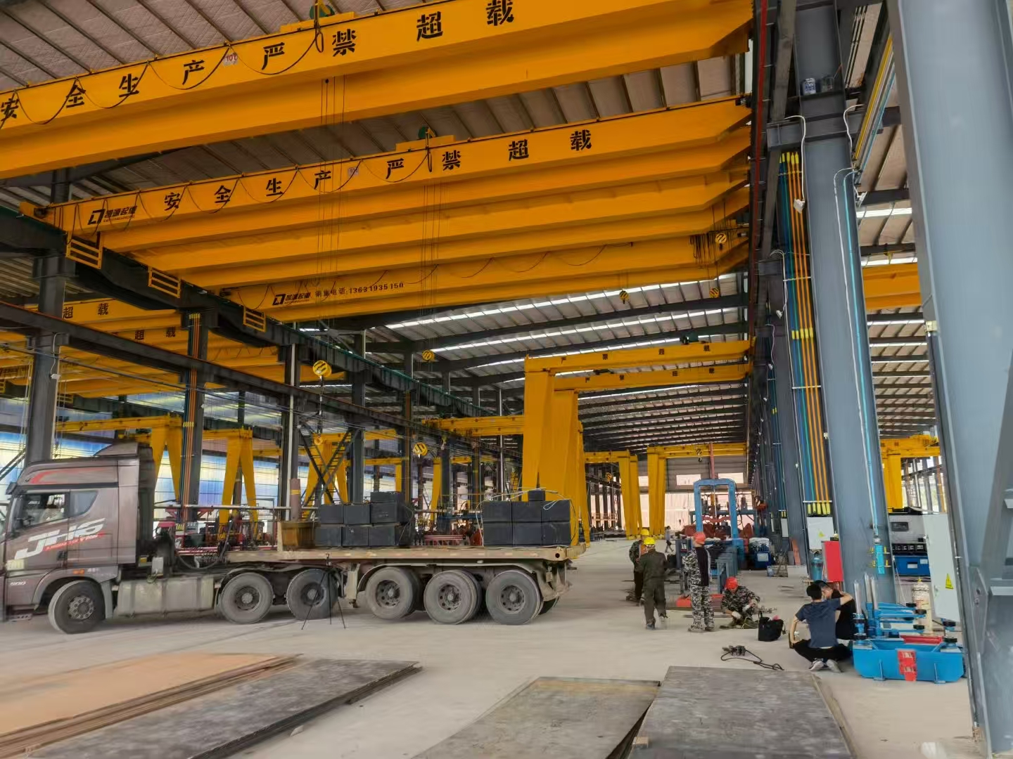 鋁電解多功能機(jī)組的作用與結(jié)構(gòu),鋁電解多功能機(jī)組是電解鋁廠(chǎng)的重要設(shè)備之一。其承擔(dān)著吸出鋁水、打殼、下料、更換陽(yáng)極、輔助提升陽(yáng)極母線(xiàn)、運(yùn)輸?shù)戎T多任務(wù)。鋁電解多功能機(jī)組的大車(chē)通常采用的是箱軌雙梁橋架結(jié)構(gòu)。主梁與端梁之間通過(guò)銷(xiāo)軸來(lái)進(jìn)行定位,并且采用高強(qiáng)度的螺栓進(jìn)行連接,不但連接性能好而且裝配也更加的方便。運(yùn)行采用的6輪支撐,雙邊單向驅(qū)動(dòng),采用的為三合一的減速器;此外具有懸掛緩沖裝置,車(chē)輪采用的是垂直輪加水平輪導(dǎo)向的方式。大車(chē)主要以外的主要組成部分有:包括運(yùn)行機(jī)構(gòu)與橋架、絕緣葫蘆以及各種供氣裝置等。另外為了運(yùn)行更加安全還安裝了預(yù)防脫軌的裝置。鋁電解多功能機(jī)組是一種更加細(xì)分化的機(jī)械設(shè)備,在目前具有比較重要的應(yīng)用,鋁電解多功能機(jī)組造價(jià)不菲,選擇好的廠(chǎng)家品牌是比較重要的。凱源起重專(zhuān)業(yè)生產(chǎn)優(yōu)質(zhì)鋁電解多功能機(jī)組,歡迎有需求的用戶(hù)同我們聯(lián)系。